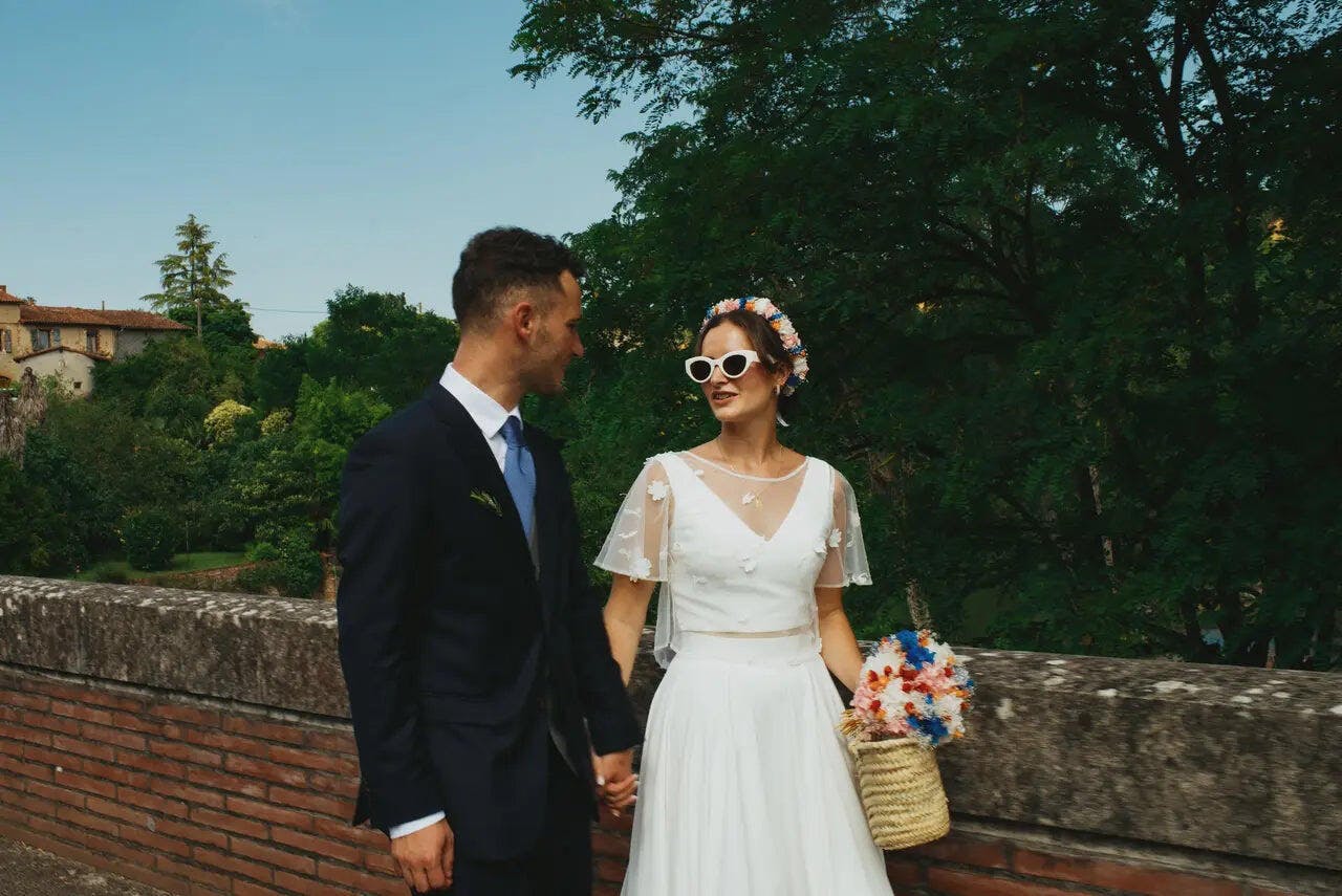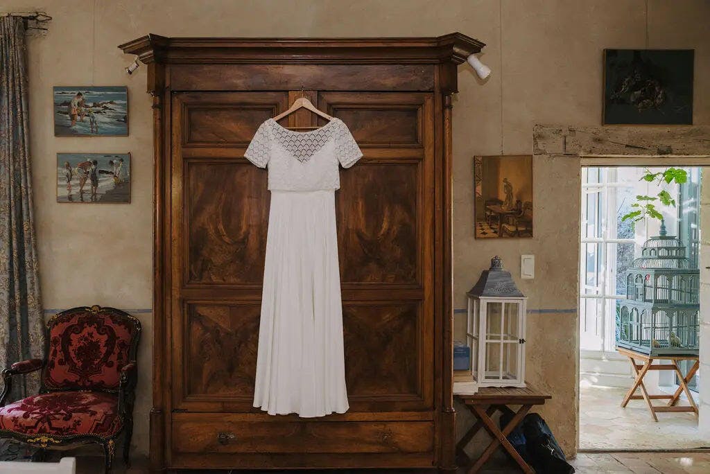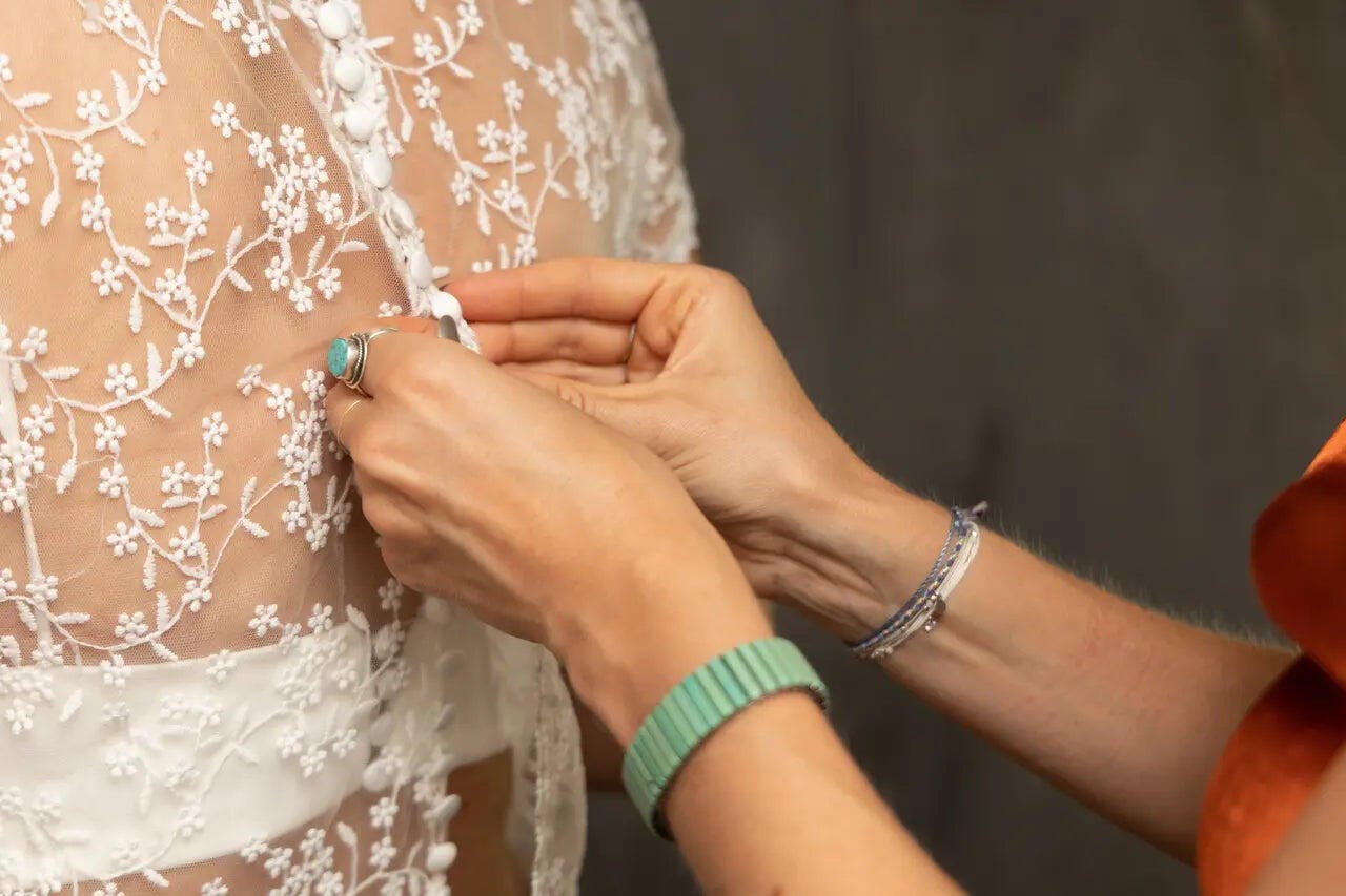 The experience was perfect for me: two fitting appointments for dresses from the collection at Cyrielle in Paris, to decide together on MY dress: the Julie skirt, the Henriette top, the Simone lace... for a magnificent 2-in-1 dress, just like me, with a high-quality finish that earned me so many compliments on the big day! In addition, the dress was really comfortable, and I felt at ease from morning until the end of the night. Photos by Serena Trerè