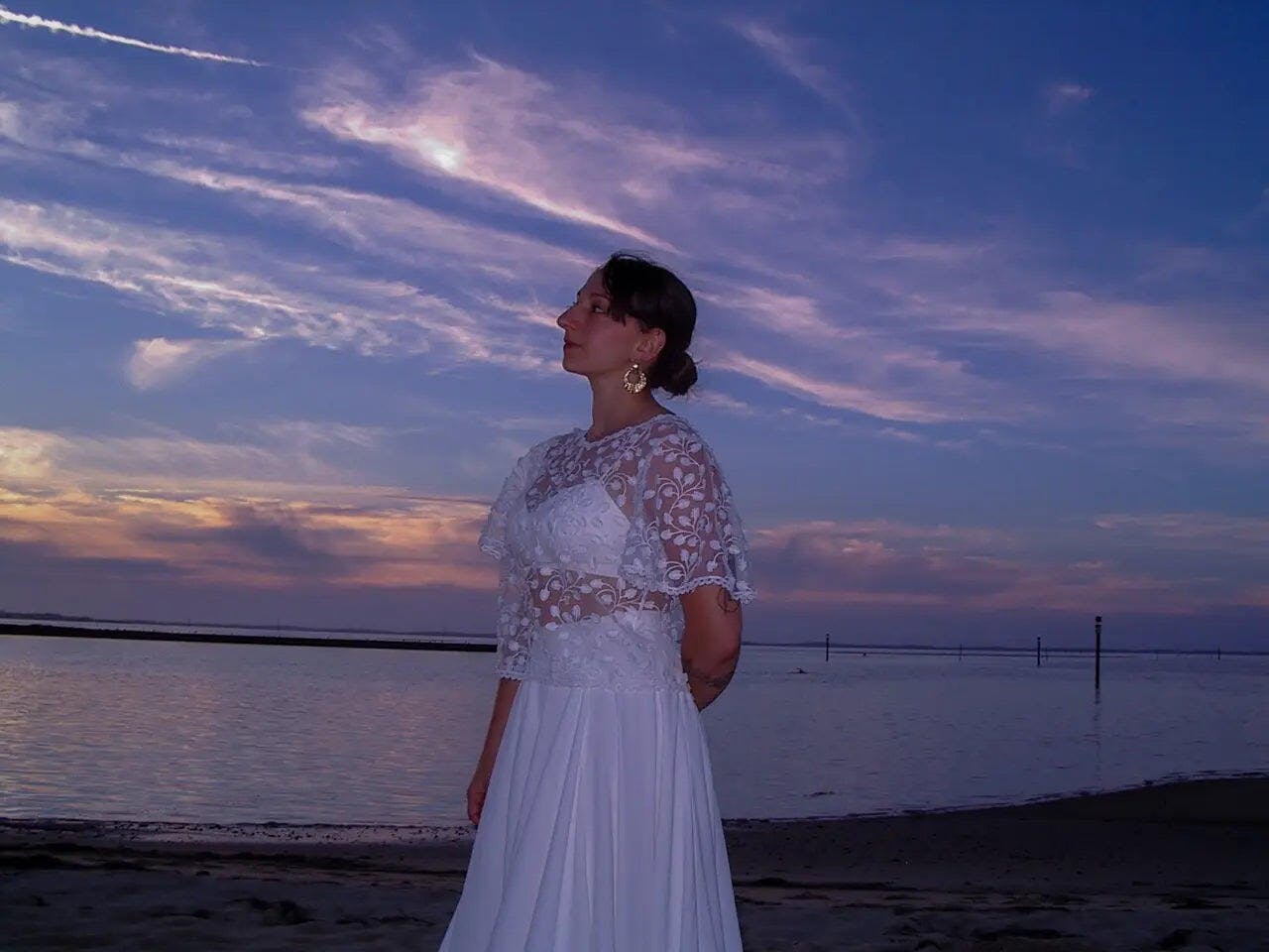 A brand with a bright future. Endlessly customizable dresses at a very reasonable price. So many choices that it was hard for me to choose just one. Thank you, Coralie, for your kindness and flexibility. My dress was the Julie with the Tina bralette and the Margot blouse, worn for my civil ceremony. In the meantime, I discovered sewing and wanted to make my own main dress. I 100% recommend Madame a dit oui!